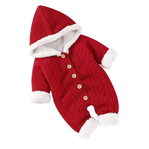 Haokaini Neonato Pagliaccetto Lavorato a Maglia con Cappuccio Maglione in Pile più Caldo Tuta da Neve Tute Tute Tute Neonato Capispalla Invernale per Ragazze dei Ragazzi