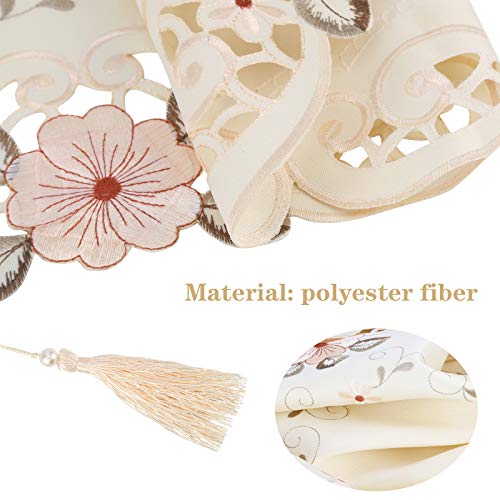 Haokaini - Runner da tavola da tè bianco vintage ricamato, con fiori e nappe, centrotavola per matrimoni, feste, banchetti, sala da pranzo e decorazione per la casa