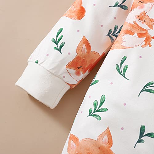 Haokaini - Tutina a maniche lunghe, con stampa floreale, girocollo, con volant, Bianco - Stampa volpe, 18 mesi