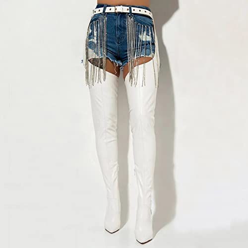 HAOLIN Stivali da Donna Alti sopra Ginocchio, Stivali Alti alla Coscia, Stivali Elasticizzati con Cintura a Tubo Lungo Taglia,White-43