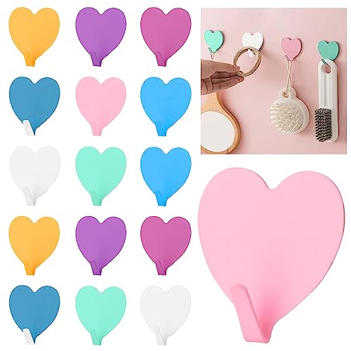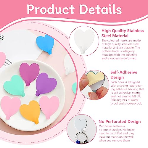 HAOMEEDUO 16 Ganci Adesivi Cuore Ganci Autoadesivi a Forma di Cuore in 8 Colori Ganci Adesivi Cuore in Acciaio Inox Gancio a Cuore Colorato per Appendere Chiavi, Picoli Oggetti, Decorazioni