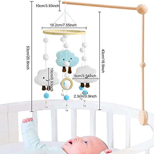 【1x Giostrina per culla in legno 20 cm x 50 cm】 Questa giostrina per culla (dimensioni: 20 cm di diametro, 50 cm di lunghezza) presenta alcune nuvole e palline blu e palline bianche. Ognuno di loro è cucito a mano di qualità in qualità, e all'interno di ogni figura c'è un'imbottitura morbida. Sono fissati con cavi in nylon resistente.