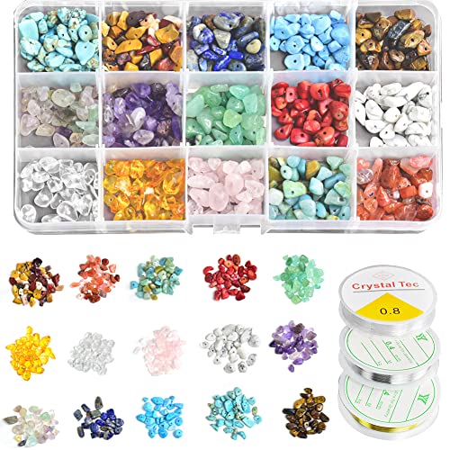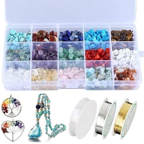 【15 tipi di perline di pietrisco irregolari】: una scatola di 15 tipi di pietre naturali, ogni colore comprende 35-40 pietre di diverse dimensioni, ogni tipo di pietra ha un unico splendore e colore, per rendere i tuoi prodotti fatti a mano più ricchi e colorati. Sii creativo e crea gioielli unici che non troverai da nessun'altra parte.