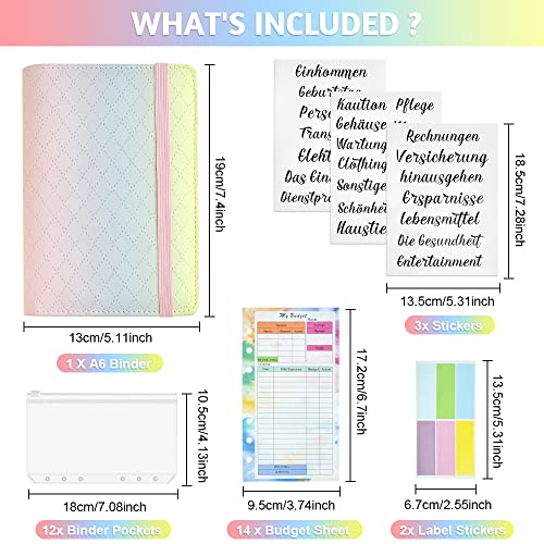 【Agenda del risparmio con buste, 42 pezzi】Il set include 1 x raccoglitore di budget in pelle A6, 12 x buste con zip trasparenti in PVC, 14 x fogli di budget spese, 12 x fogli di etichette colorate, 3 x fogli di adesivi. Un bellissimo set di cartelle economiche che sono il miglior pianificatore di budget mensile, il prodotto da utilizzare come metodo di risparmio.