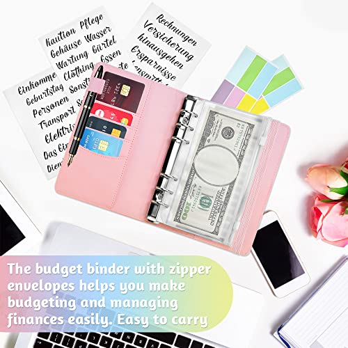 HAOMEEDUO Raccoglitore ad Anelli A6 Organizer Budget Planner con Buste Agenda del Risparmio con Buste con 12 Buste Trasparenti,14 Budget, 2 Fogli Adesivi e 3 Fogli Etichette Abbinati