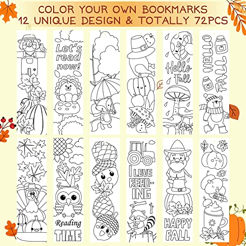 Haooryx 75Pcs Colora il Tuo Proprio Autunno Segnalibro FAI DA TE Bambini Carino Spaventapasseri Turchia Gufo Segnalibri Da Colorare Creativo Felice Autunno Disegno Libro Marker Scuola Carta Artigi