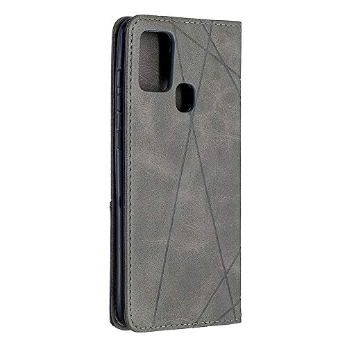 Haotian Adatta per Cover Samsung Galaxy A21s, Comodo e Robusto Chiusura Magnetica Flip Case PU Leather [con Slot per Schede] Semplice ed Elegante Design Trapezoidale Unico. Grigio