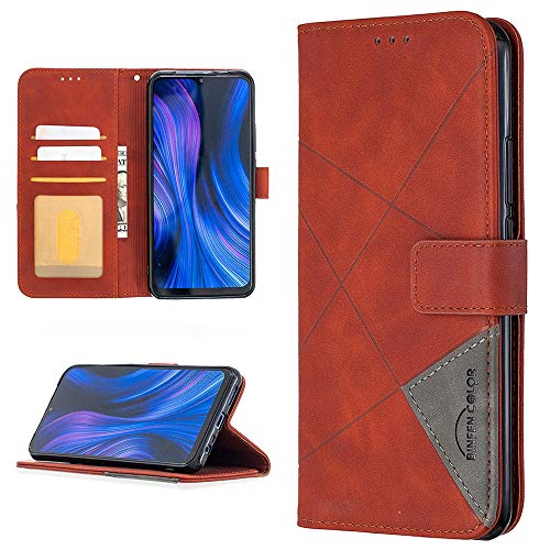 Haotian Adatta per Cover Xiaomi Redmi 9C, Comodo e Robusto Chiusura Magnetica Flip Case PU Leather [con Slot per Schede] Semplice ed Elegante Design Trapezoidale Unico. Marrone-1