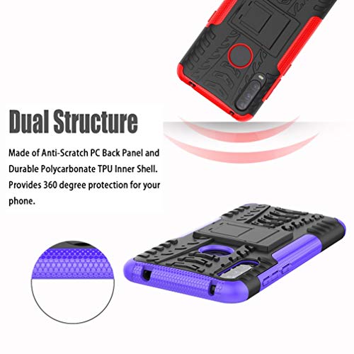 HAOTIAN Cover per Alcatel 3L 2020 Cover e 2 Vetro temperato, Custodia Protettiva con Supporto, Pannello Posteriore PC AntiGraffio + Antiurto TPU Dual Layer Armour Ibrida Case. Rosa Rossa