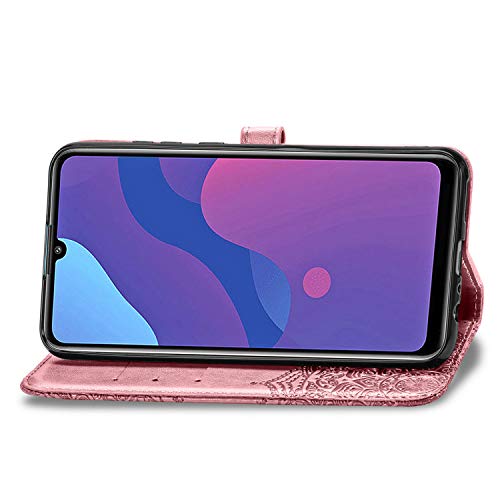 HAOTIAN Cover per Huawei Honor 9A/Play 9A Cover, Custodia Chiusura Magnetica Flip Case Stile, Pelle PU Mandala Sbalzato con Supporto di Stand/Carte Slot. Oro Rosa