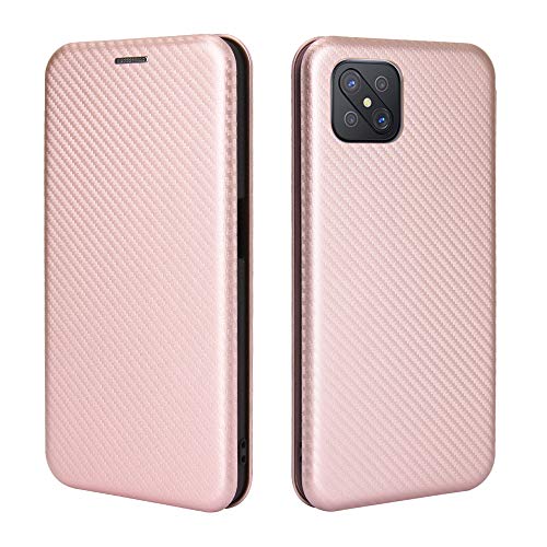 HAOTIAN Cover per Oppo Reno 4Z 5G(Reno4 Z 5G) Cover Magnetica Portafoglio, Custodia in Robusto Pannello PC in Fibra di Carbonio + Antiurto TPU + Anello Kickstand con [Slot per schede]. Rosa
