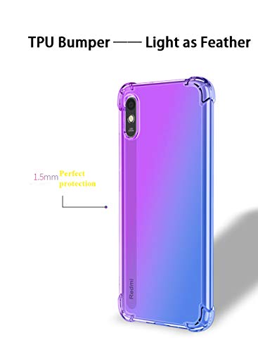 HAOTIAN Cover per Xiaomi Redmi 9AT / Redmi 9A Coque, Custodia in TPU Gradient Color Case Cover, [Angoli rinforzati] Custodia protettiva trasparente antiurto morbida TPU Silicone Bumper (Blu/Rosa)