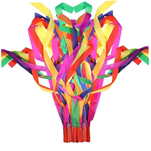 Materiale di qualità: questo streamer a nastro di danza è realizzato in materiale di poliestere di qualità, che non è buono nella consistenza anche duratura e non facile indossare, quando il nastro viene applicato per ruotare, sembra un arcobaleno nel cielo.