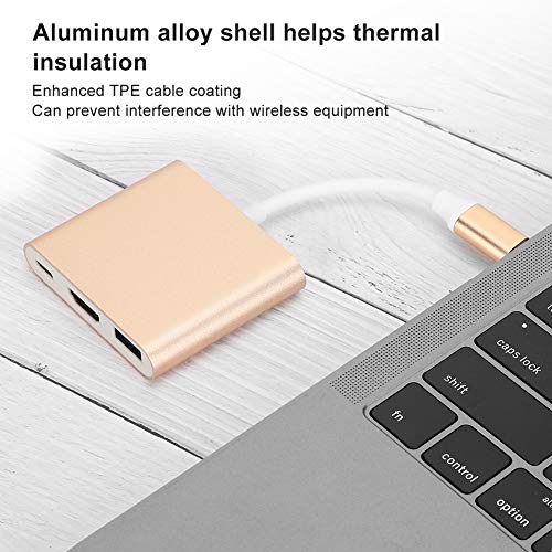 HAOX Adattatore USB Tipo C, Adattatore multiporta da USB C a Adattatore multiporta USB 3.1 4K Design multiporta Rivestimento Migliorato del Cavo TPE per Monitor per proiettore(Oro)