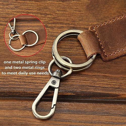 【La Confezione Include】Il pacchetto portachiavi per auto include 2 portachiavi in vera pelle. Questo portachiavi ha due colori: nero e marrone. Puoi scegliere il tuo colore preferito da utilizzare in base alle tue preferenze e riporre bene le tue chiavi.
