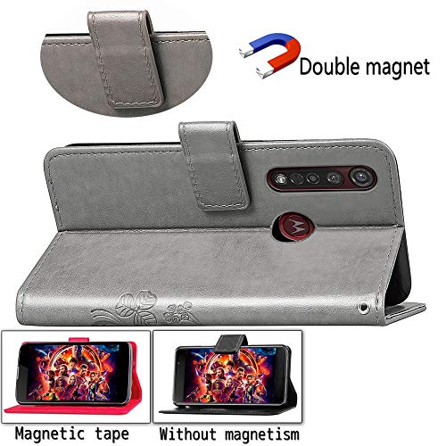 Haoye Adatta per Cover Motorola Moto G8 Plus, Elegante Disegno a Rilievo Custodia a Libretto Versatile. Grigio