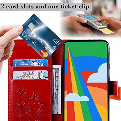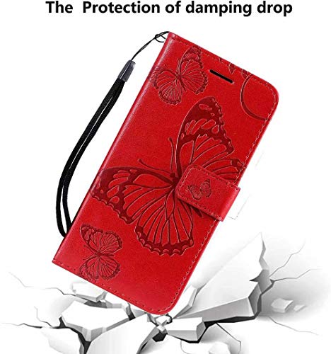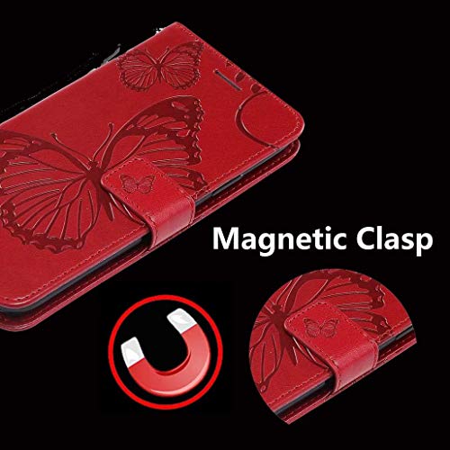 HAOYE Cover per LG K41S / LG K51S, LG K41S / LG K51S Custodia per Cellulare Portafoglio in Pelle Goffrata con Motivo a Farfalla, con Vani di Carte e Chiusura Magnetica, Rosso