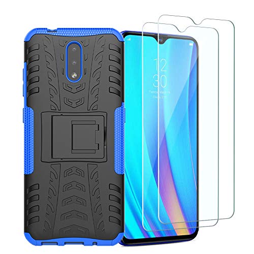 HAOYE Cover per Nokia 2.3 Cover e 2 Vetro temperato, Custodia Protettiva con Supporto, Pannello Posteriore PC AntiGraffio + Antiurto TPU Dual Layer Armour Ibrida Case. Blu