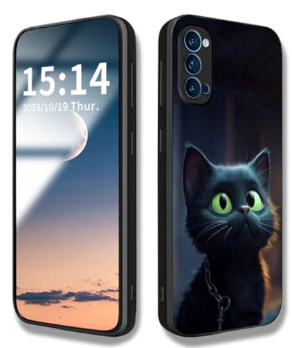 Haoye Cover per Oppo Reno 4 (Reno4) 5G, Custodia in Modello di Gatto Carino, AntiGraffio Back Cover + Bordo in Silicone Morbido TPU Protettiva Case (Gatto Nero)