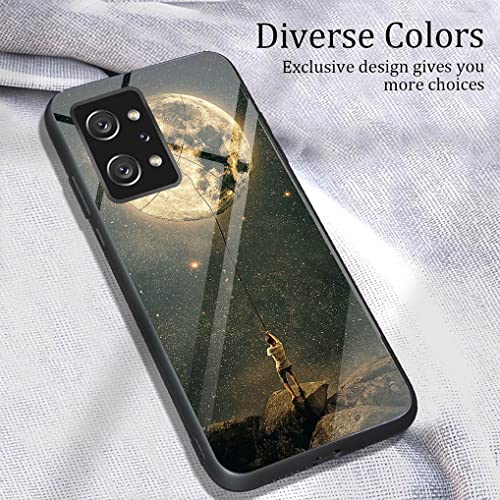 HAOYE Cover per Realme GT Neo 3T 5G/Realme GT 2 5G/Realme GT Neo 2, Elegante Brillantini Modello Silicone TPU Bumper Retro in Vetro Temperato Ultra Sottile Antiurto Custodia Case, Cacciatore di Luna