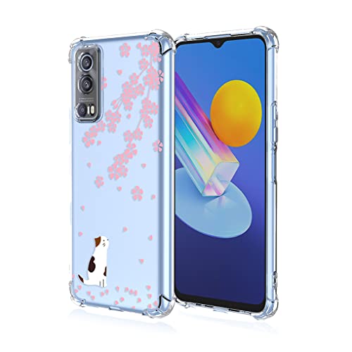 HAOYE Cover per Vivo Y52 5G / Vivo Y72 5G, Stile di Pittura a Colori Freschi Silicone Morbido Trasparente TPU Bumper Ultra Sottile Antiurto Custodia Case, Gatto Sakura