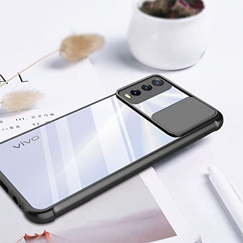 HAOYE Cover per Vivo Y20s / Vivo Y20 / Vivo Y11s, Scorrevole [Protezione Fotocamera] Custodia Ultra Sottile Trasparente Rugged Silicone PC + TPU Bumper Antiurto Cover Case, Nero