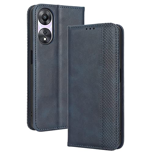 Haoye Leather Folio Cover per Oppo A58 4G Cover, PU + TPU Leather Wallet Cover, Premium Flip Case Custodia in Pelle Portafoglio con Funzione Stand, Blu