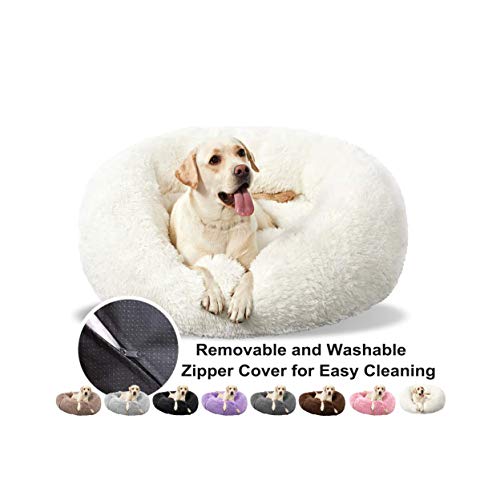 Haoye Letto per Cani Rotondo Cuscino Gatti Letto Donut, Grande Letto Peluche Ultra Morbido da Interno Animale Domestico, Antiscivolo, Lavabile Adatto ad Animali di Grande Taglia - Bianca Ø 120cm