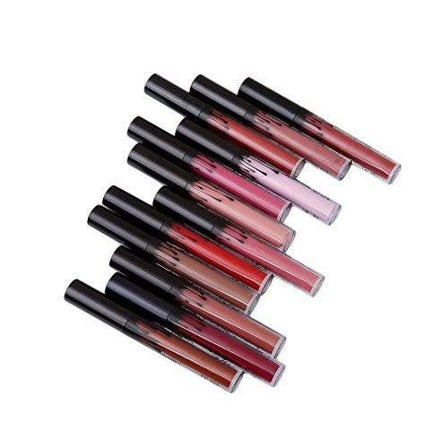 Haoza - Lucidalabbra opaco resistente all'acqua, 12 colori, lunga durata, idratante, rossetto liquido, make-up