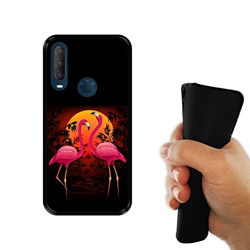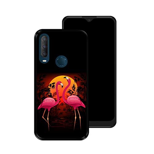 Hapdey Custodia per [ Alcatel 1S 2020 ] Disegni [ Fenicotteri Rosa sul Tramonto Tropicale ] Cover Guscio in Silicone Flessibile Nero TPU