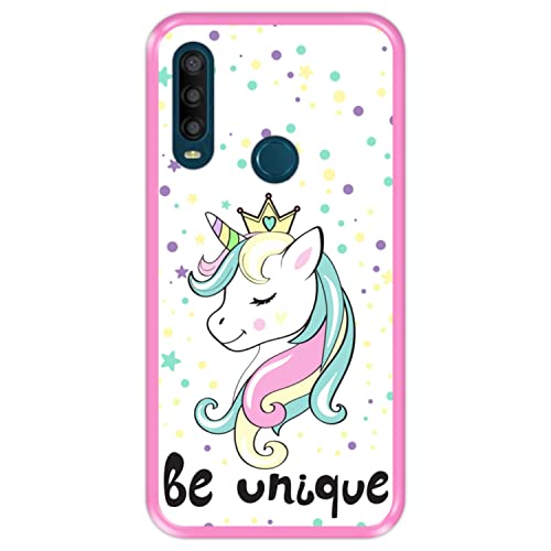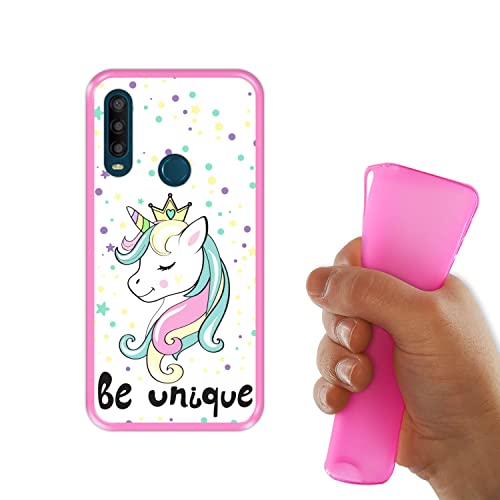 Hapdey Custodia per [ Alcatel 1SE 2020 ] Disegni [ Unicorno, Arcobaleno, Sii Unico ] Cover Guscio in Silicone Flessibile Rosa TPU