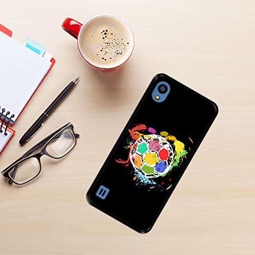 Hapdey Custodia per [ ZTE Blade A5 2019 ] Disegni [ Pallone da Calcio Astratto e Multicolore ] Cover Guscio in Silicone Flessibile Nero TPU