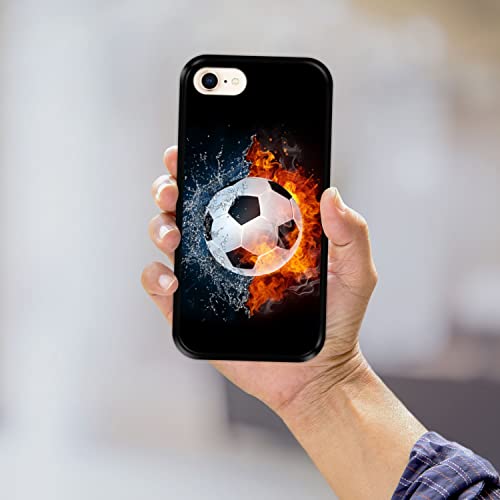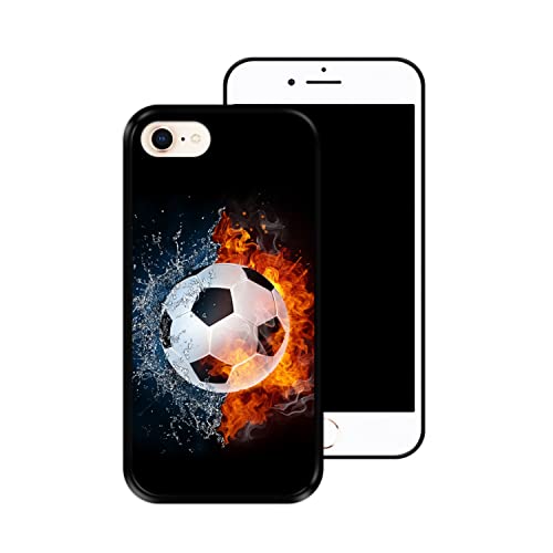 Hapdey Custodia per [ iPhone 7-8 ] Disegni [ Fuoco e Acqua, Pallone da Calcio ] Cover Guscio in Silicone Flessibile Nero TPU