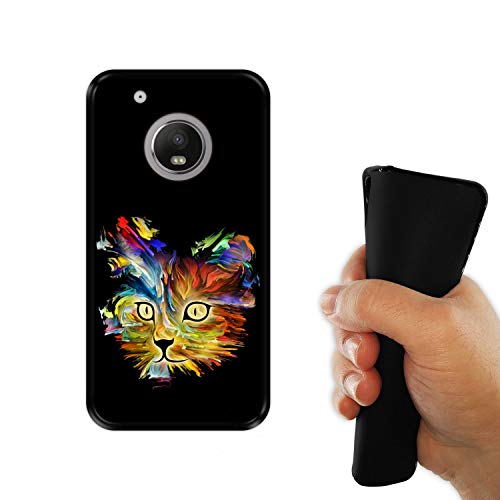 Hapdey Custodia per [ Lenovo Motorola Moto G5 Plus ] Disegni [ Ritratto di Gatto in Colori Vivaci ] Cover Guscio in Silicone Flessibile Nero TPU