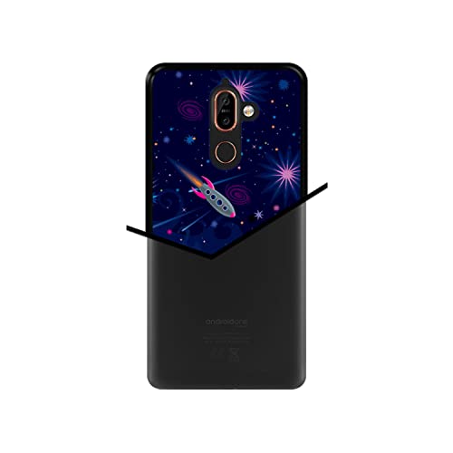 Hapdey Custodia per [ Nokia 7 Plus ] Disegni [ Vista cosmica, Pianeti e astronavi ] Cover Guscio in Silicone Flessibile Nero TPU