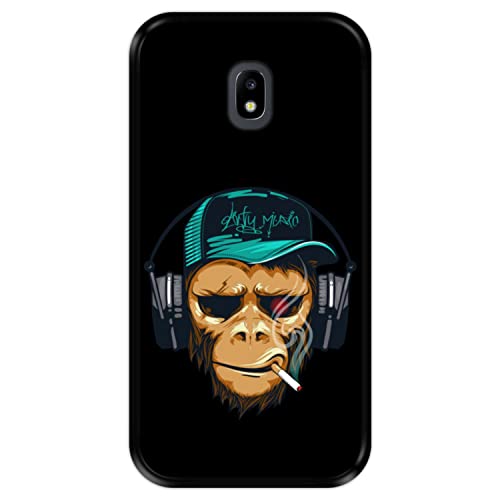 Hapdey Custodia per [ Samsung Galaxy J3 2017 ] Disegni [ Scimpanzé DJ, Scimmia Hipster ] Cover Guscio in Silicone Flessibile Nero TPU