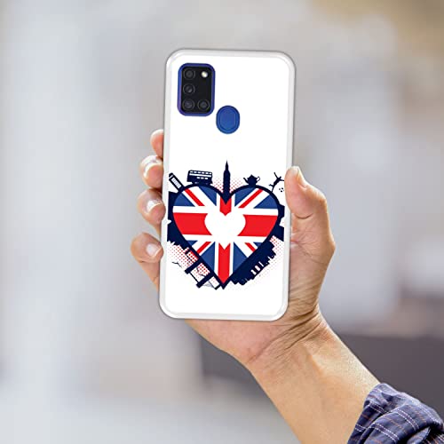Hapdey Custodia per [ Samsung Galaxy A21s ] Disegni [ Inghilterra, Bandiera a Forma di Cuore del Regno Unito ] Cover Guscio in Silicone Flessibile Transparente TPU