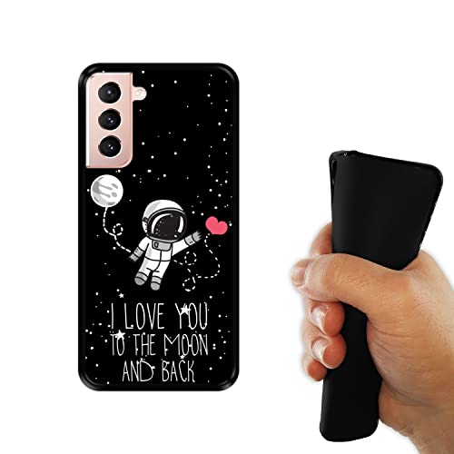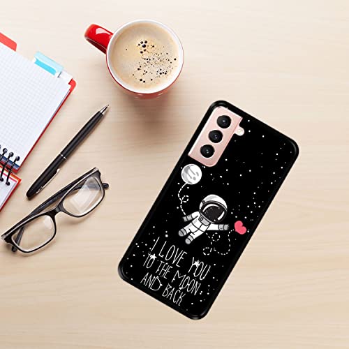 Hapdey Custodia per [ Samsung Galaxy S21 - S21 5G ] Disegni [ Astronauta, Love You to The Moon And Back ] Cover Guscio in Silicone Flessibile Nero TPU