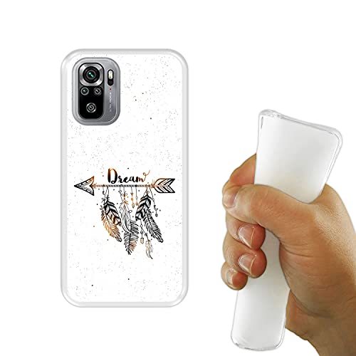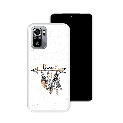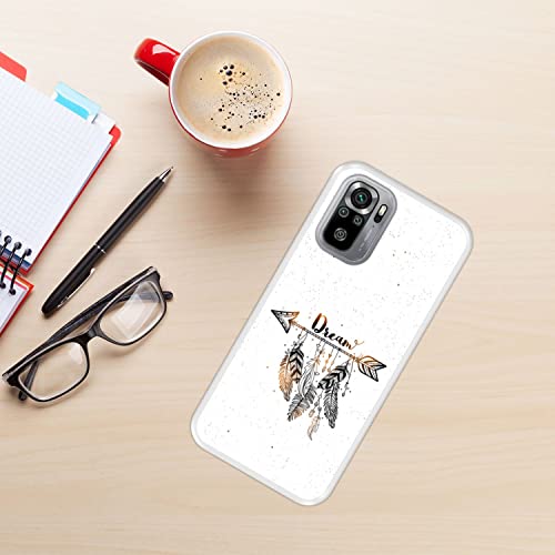 Hapdey Custodia trasparente per Xiaomi Redmi Note 10-10S, design [stile boho, acchiappasogni con piume] Cover in silicone flessibile TPU