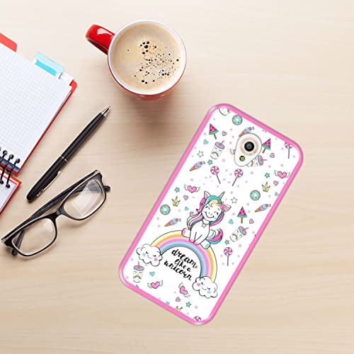 Hapdey Custodia per [ Vodafone Smart Prime 7 ] Disegni [ Arcobaleno, sogna Come Un Unicorno ] Cover Guscio in Silicone Flessibile Rosa TPU
