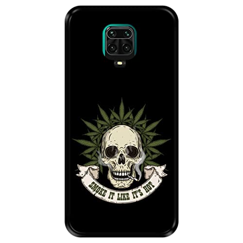 Hapdey Custodia per [ Xiaomi Redmi Note 9S - 9 PRO - 9 PRO Max ] Disegni [ Cranio con Marijuana, Smoke it Like It's Hot ] Cover Guscio in Silicone Flessibile Nero TPU