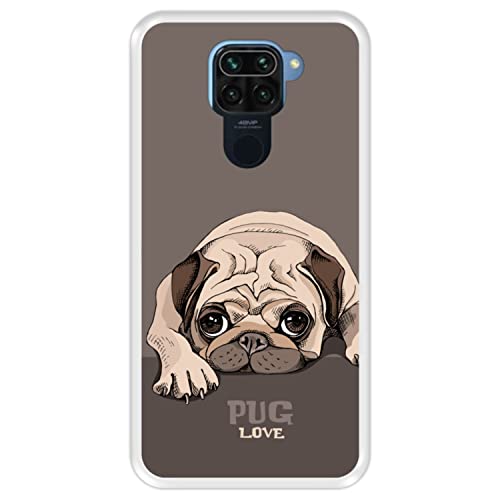Hapdey Custodia per [ Xiaomi Redmi Note 9 ] Disegni [ Pug Puppy Riposo, Pug Love ] Cover Guscio in Silicone Flessibile Transparente TPU