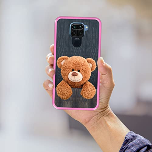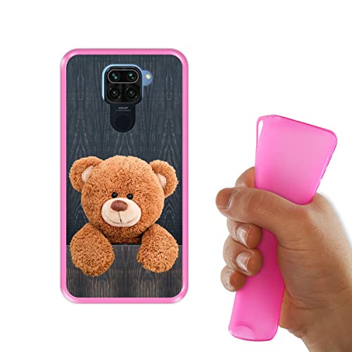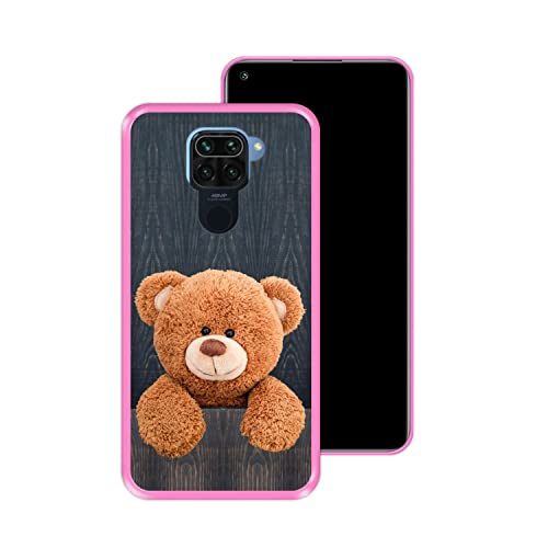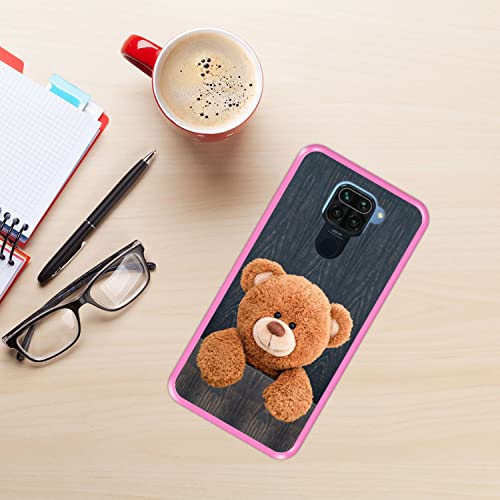 Hapdey Custodia per [ Xiaomi Redmi Note 9 ] Disegni [ Tenero Orsacchiotto Dietro Un recinto ] Cover Guscio in Silicone Flessibile Rosa TPU