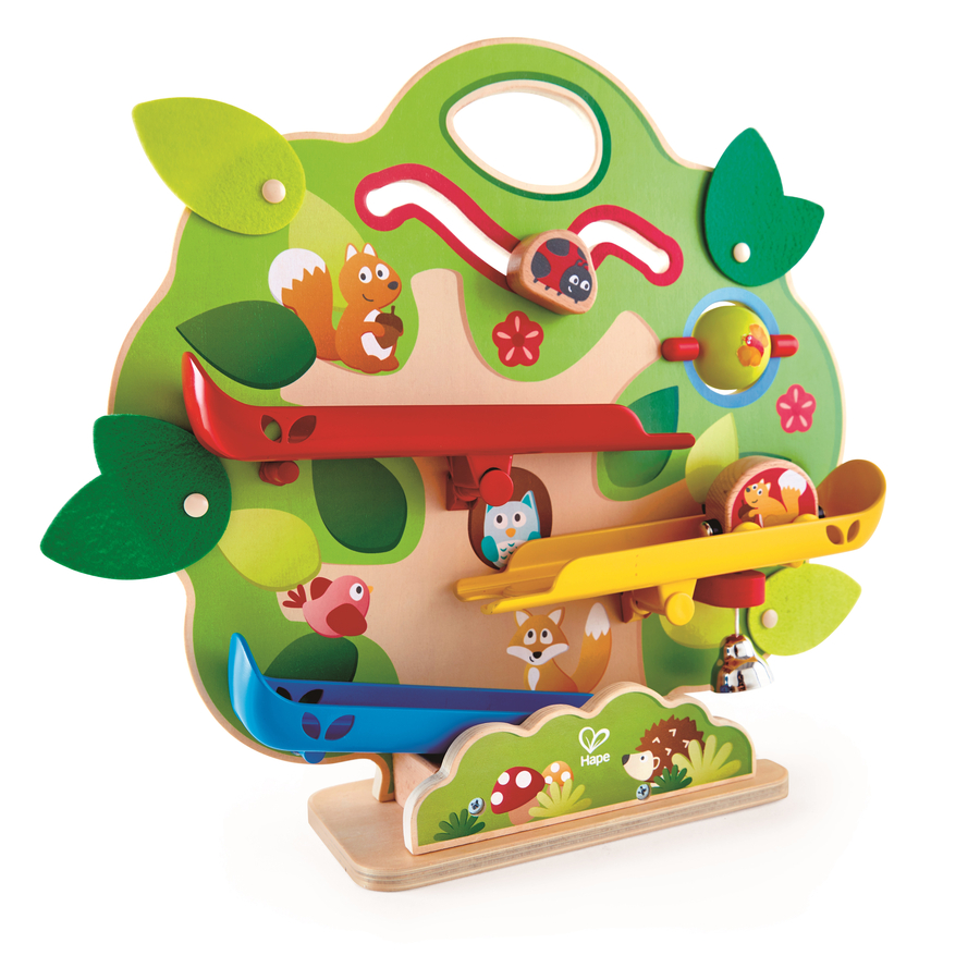 Questo scoiattolo è pronto per scivolare giù! Posizionalo in cima all'albero e guardalo scivolare lungo le varie rampe mentre suona la campanella una volta arrivato in fondo. Esplora le altre divertenti caratteristiche. Dettagli: Materiale: Legno/plastica Dimensioni: lunghezza: 39, Larghezza: 11, Altezza: 37 cm Età: A partire da 18 mesi Avvertenza! Non adatto per bambini di età inferiore ai 18 mesi.