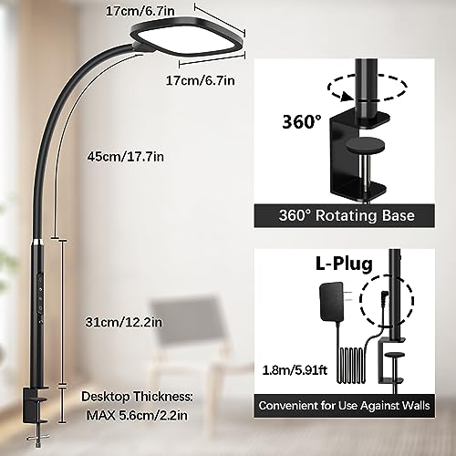 ✨【Facile da usare e installare】Composta da un tubo in alluminio e da un braccio flessibile, questa lampada può ruotare di 360 gradi, consentendovi di regolare liberamente l'altezza e l'angolo della fonte luminosa. Il braccio regolabile è rinforzato per garantire la stabilità della testa della lampada. L'installazione è semplice e richiede solo un passaggio. Questa luce con pinza risparmia spazio sulla scrivania e può essere fissata su superfici con uno spessore massimo di 5,6 cm.