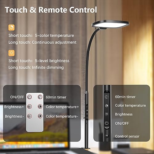 【Controllo touch e telecomando】Questa lampada professionale offre due modalità di controllo: touch e telecomando. Utilizzate il telecomando incluso per regolare facilmente la temperatura del colore, la luminosità e impostare un timer. È perfetta per monitor pc, ufficio, studiare, ecc.
