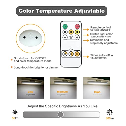 【Luminosità e Temperatura del Colore Regolabili】Rispetto ad altre luce, la nostra lampada senza fili da 5W può raggiungere 300 lumen, che è più luminosa. La lampada da tavolo a LED è infinitamente dimmerabile e ha tre modalità di temperatura di colore (3000K, 4500K, 6000K). Adatto per camera da letto / studio scrivania / armadio / armadio / parete appesa / vanità ecc.