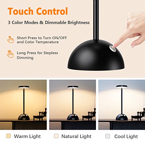 Hapfish Lampada LED da Tavolo Senza Fili Ricaricabile, 5000mAh Graziosa e Elegante Lampade Comodino a Batteria, Luce Scrivania Portatile, per Ristorante/Esterno/Comodino/Tavola