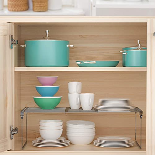 Mensole Cucina e Alzatina Cucina: Puoi regolare i rack per soddisfare le tue esigenze di archiviazione, modalità estesa per armadi larghi e modalità monouso per armadi più piccoli. Ideale per conservare spezie in bottiglie, lattine, barattoli, piatti, cucchiai, taglieri, oggetti dispensa sugli scaffali.