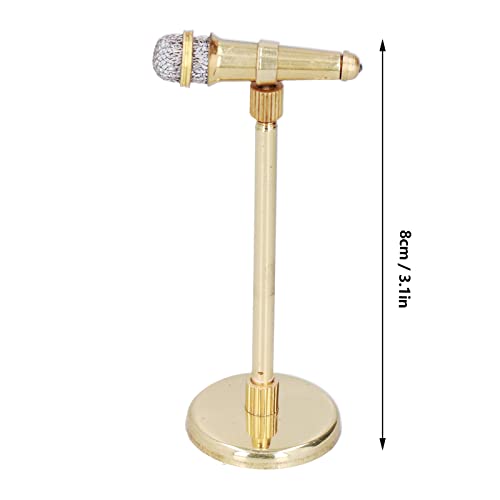 Hapivida Microfono in Miniatura da 8cm Mini Strumento Musicale Microfono con Supporto in Oro con Modello di Strumento a Scatola per La Decorazione Domestica